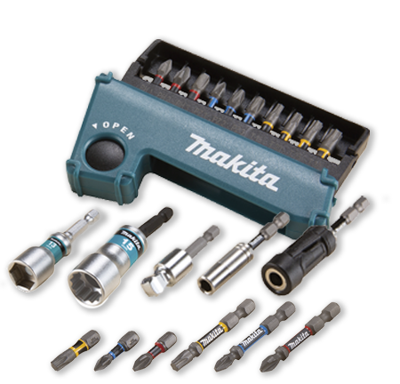 Sættet indeholder PH1, PH2, PH3, PZ1, PZ2, PZ3, T15, T20, T25, T30 bits og 50 mm bitholder